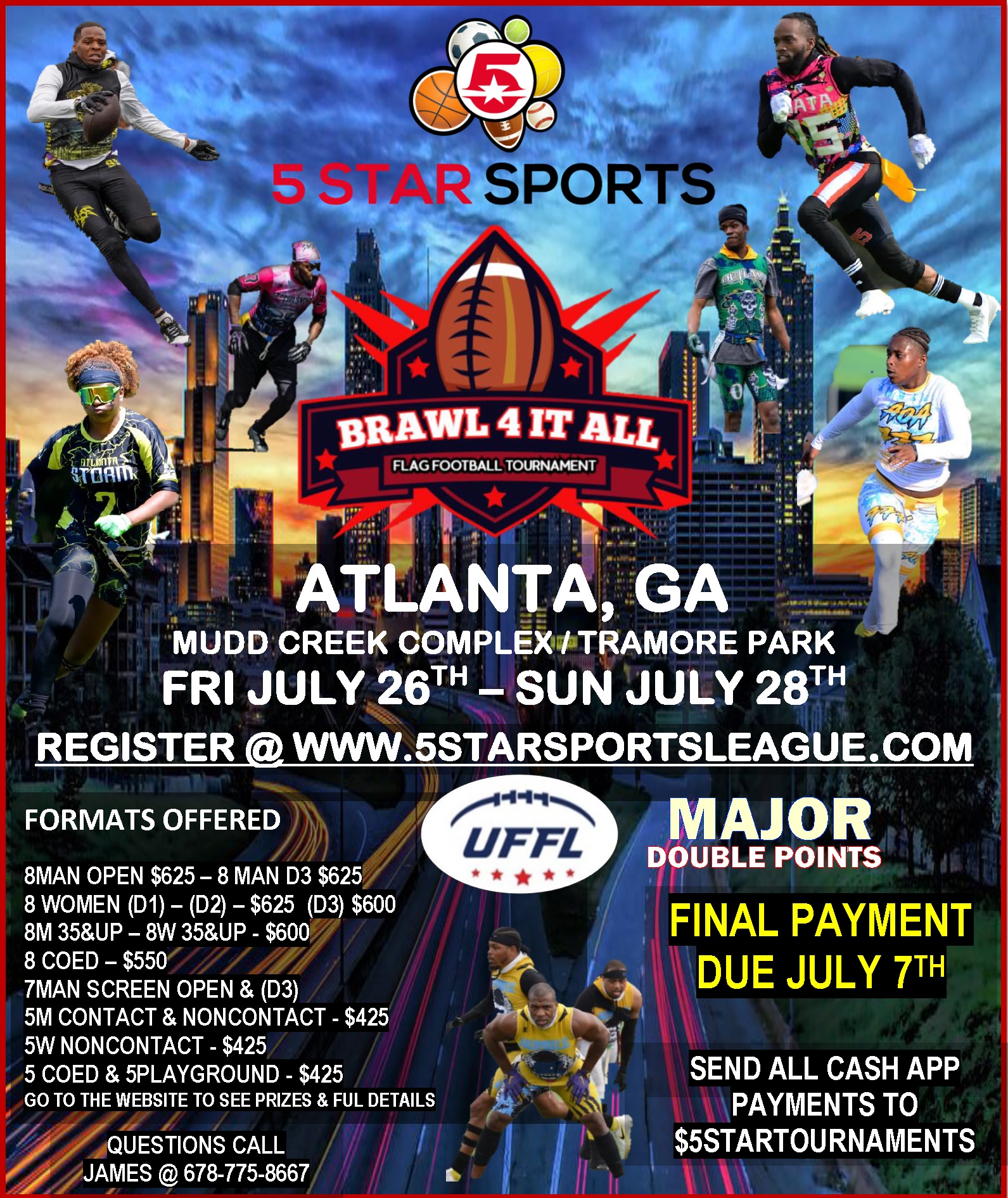 Join 5 Star Youth Alliance Inc. for our 6th Annual Brawl 4 It All Flag Football.