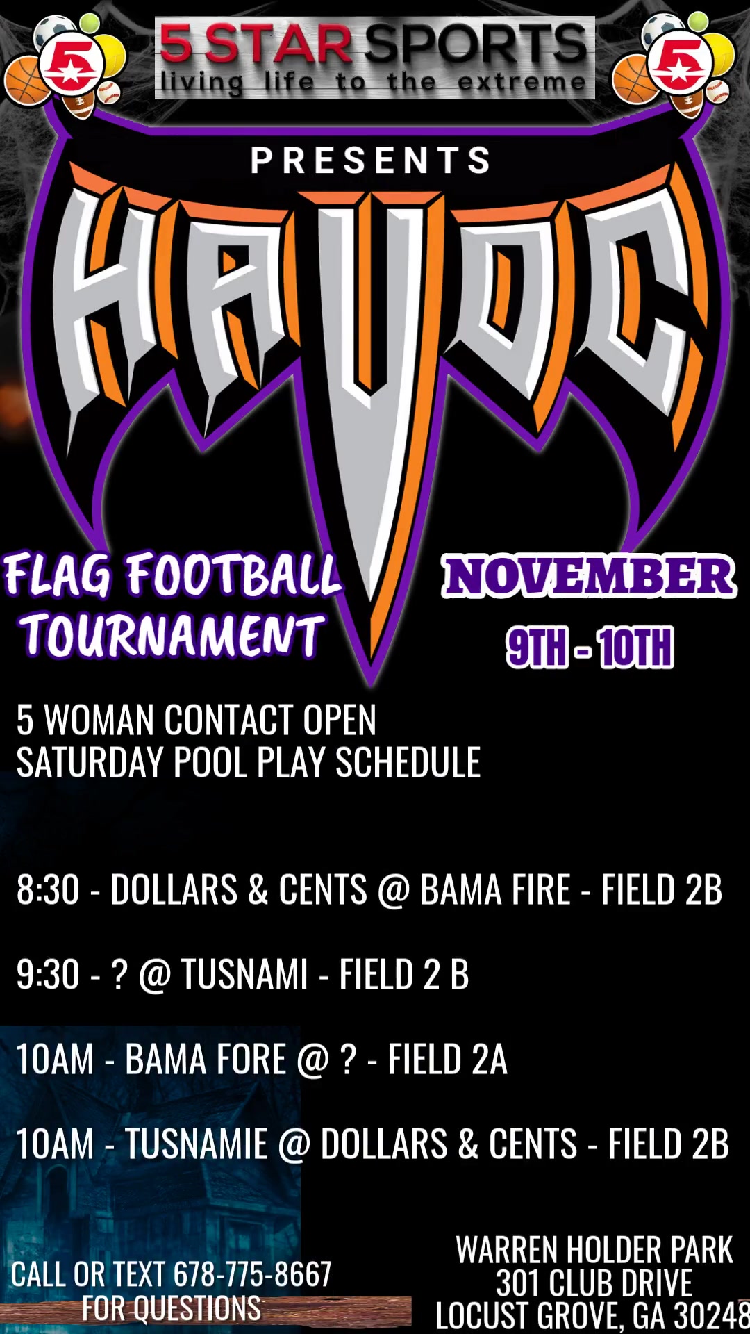 2024 HAVOC - 5 WOMAN NONCONTACT OPEN Flag Football (Grass) · Female Novice