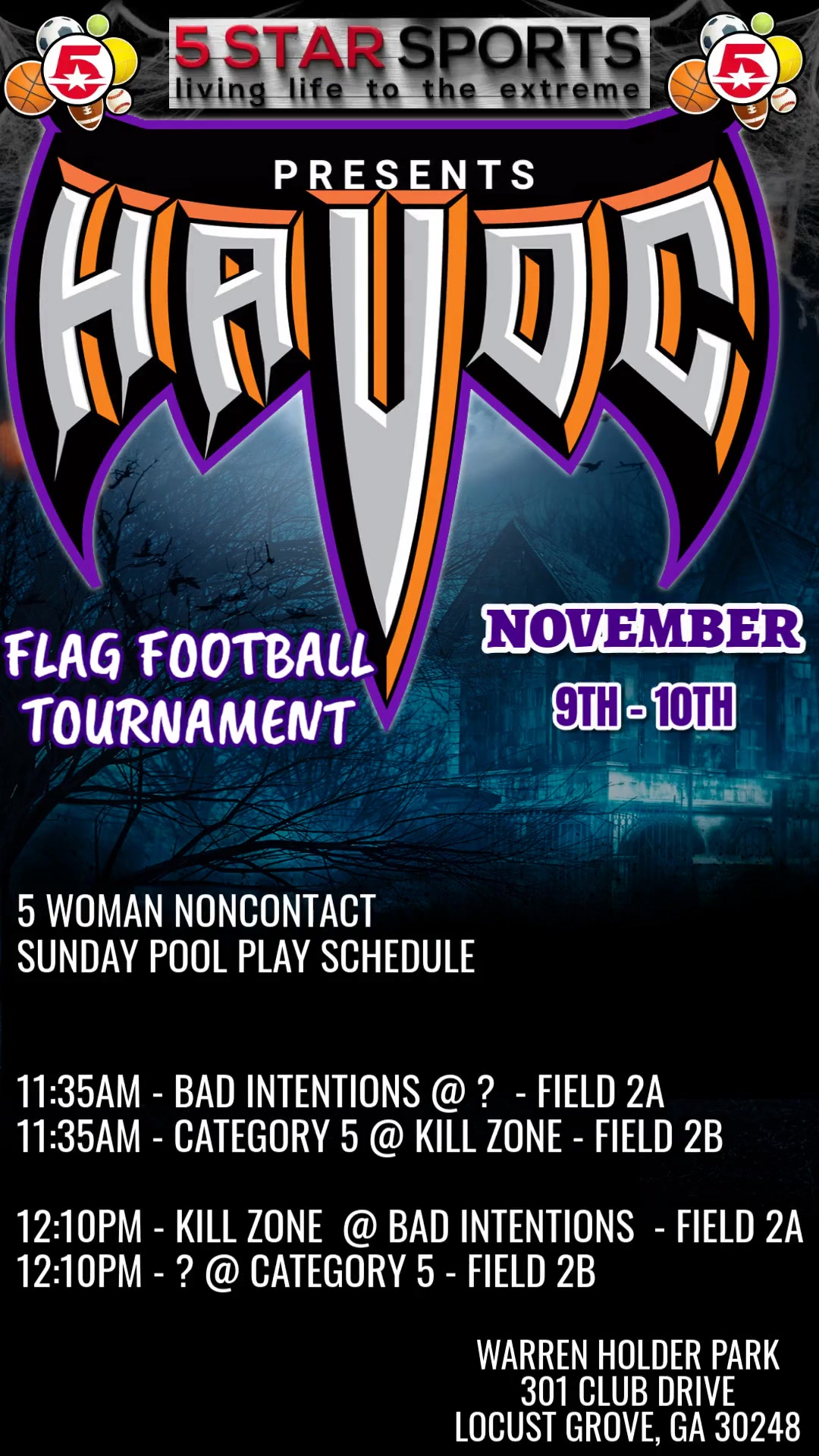2024 HAVOC - 5 WOMAN CONTACT OPEN Flag Football (Grass) · Female Novice