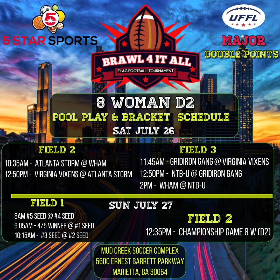 Brawl 4 It All 2025 - 8 WOMAN - D2 Flag Football (Turf) · Female Intermediate