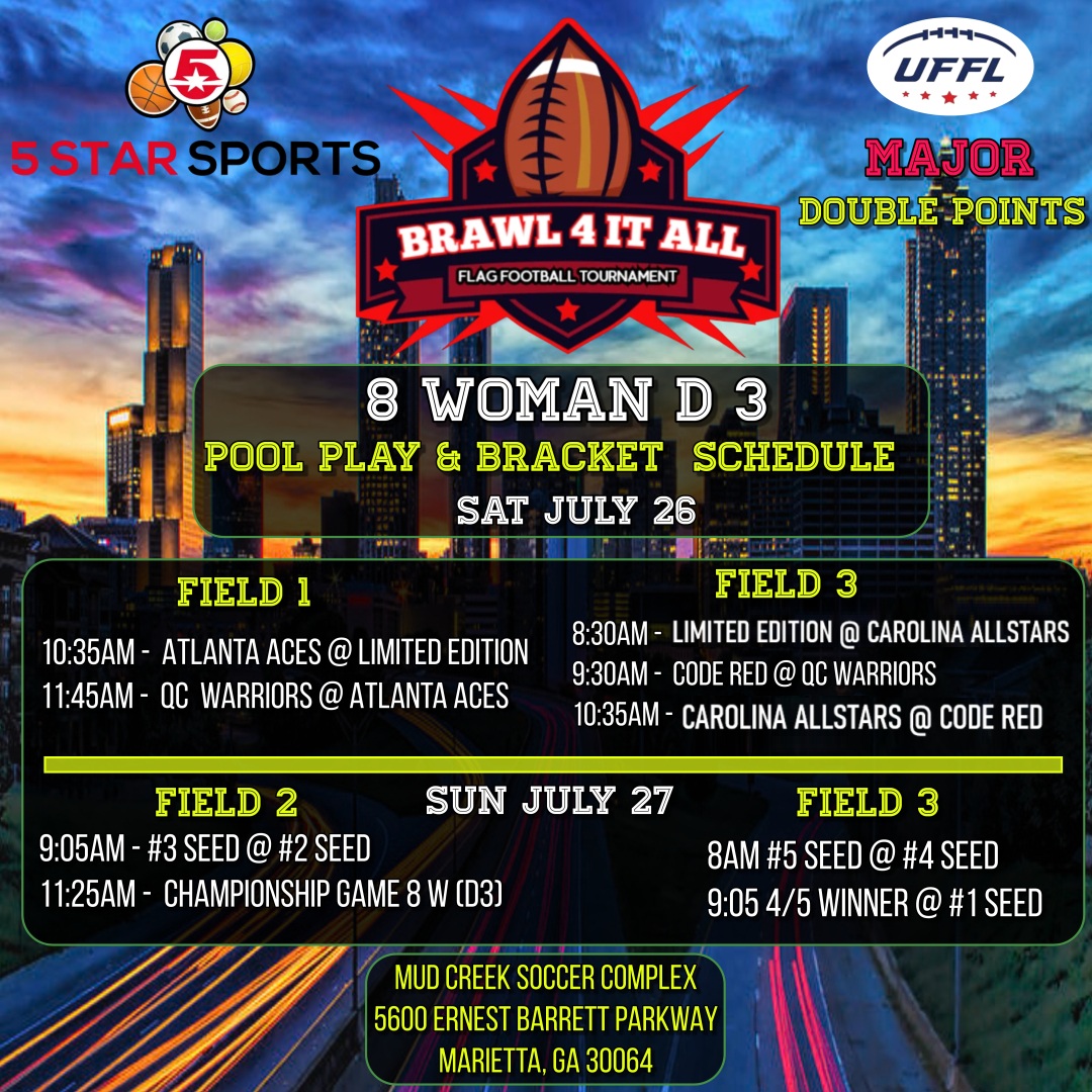 Brawl 4 It All 2025 - 8 WOMAN - D3 Flag Football (Turf) · Female Intermediate